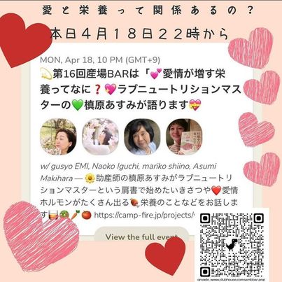 第16回産場Bar(サンババー)は、愛情が増す栄養って何?ラブニュートリションマスターの槙原あすみが愛と栄養の関係について語りまくりますよ♪