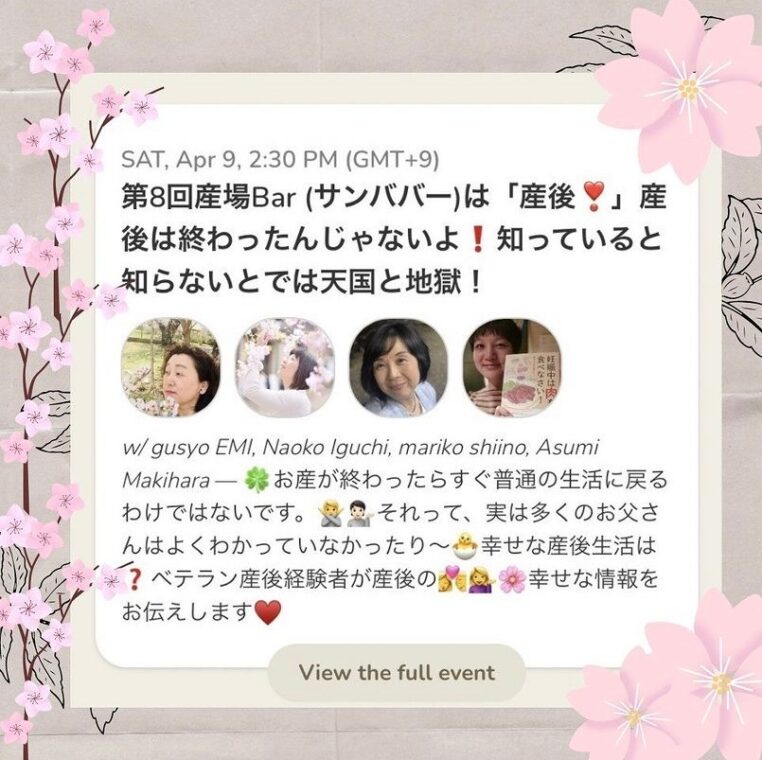 第8回産場Bar(サンババー)は「産後!」産後は終わったんじゃないよ!知っていると知らないとでは天国と地獄!