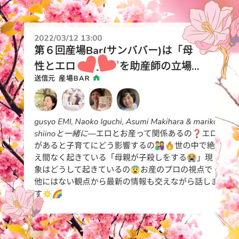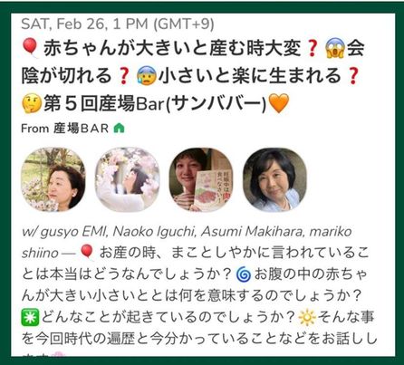 第5回産場Bar(サンババー)は赤ちゃんが大きいと産む時大変⁉会陰が切れる⁉小さいと楽に生まれる⁉