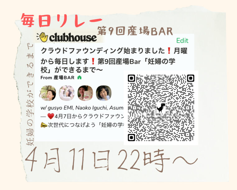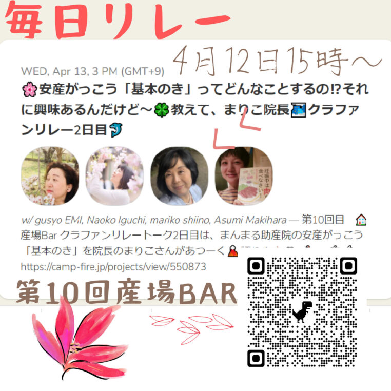 第10回産場Bar(サンババー)は、安産がっこうの「基本の木」ってどんなことするの!?それに興味あるんだけど~教えて、まりこ院長!クラファンリレー2日目