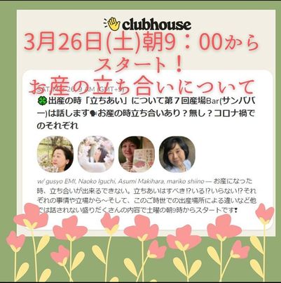 第1回産場Bar(サンババー)は2022年1月1日クラブハウスで音声ユニットとして始まりました。
